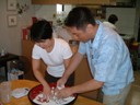 私たちにも、打てましたー ママー あたちも やるー ソバウチ トテモ オモシローイデース 出張蕎麦打ち教室もできます |
