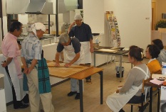 あなたも打てます 自分で打った蕎麦が一番おいしい! 見て、打って、試食して、 おみやげにも持って帰れます 【蕎麦打ち&試食コース】 お一人様 3,000円 お蕎麦の打ち方を最初から丁寧にお教えします。 蕎麦打ちを体験し、 そのあとご自分で打った蕎麦を試食していただきます。 残った蕎麦はお持ち帰りになれます。 4人前の材料費込み 【蕎麦打ち&リビング蕎麦コース】 お一人様 5,000円 お蕎麦の打ち方を最初から丁寧にお教えします。 蕎麦打ちを体験し、そのあと リビング蕎麦(3,000円のコース)を楽しんでいただきます。 ご自分で打った蕎麦もお召し上がりになれます。 残った蕎麦はお持ち帰りになれます。 4人前の材料費込み −−−−−−−−−−−−−−− もう少し深くやってみたい、という方むけに、次のようなコースもご用意しております。どうぞご相談ください。 【更科蕎麦・変わり蕎麦コース】 真っ白い更科粉で打つ更科蕎麦、 それに柚子などを練りこむ変わり蕎麦。 その打ち方をお教えします。 【蕎麦つゆコース】 かえしを作り、出汁をとり・・・ 蕎麦つゆの作り方をお教えします。 なお、場所と時間の関係で、3名様くらいまでが適当です。 ただし、2人1組であれば3組6名様まで可能です。 蕎麦打ち&リビング蕎麦コースの場合、一部の方がリビング蕎麦の部から参加されることもできます。(料金は3,000円) 蕎麦打ちの所要時間は約2時間です。 |